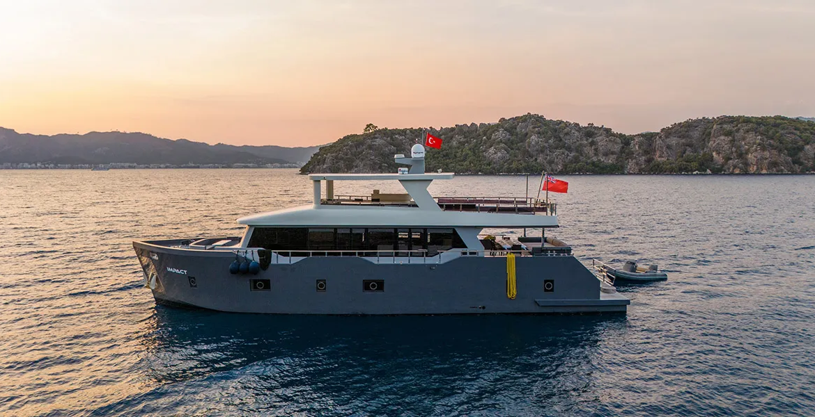 IMPACT is a stunning 24-meter luxury yacht charter, perfect for exploring the captivating Turkish coastline in comfort and style. With its exceptional value-for-money offering, this sleek trawler is designed for guests seeking an unforgettable charter yacht experience. Whether you’re cruising along the Aegean or anchored in a secluded bay, IMPACT offers the ideal combination of adventure and relaxation, providing endless opportunities to discover Turkey’s coastal beauty while enjoying first-class service from her dedicated crew.
